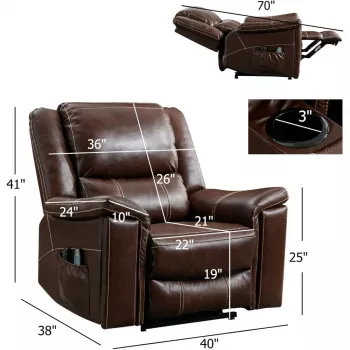 Genuine Leather Power Lift Recliner with Dual Motors, Massage, and Heat
