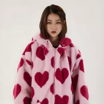 Harajuku Heart Print Plush Hooded Jacket