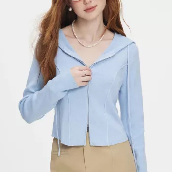 Hooded Cardigan Solid Sweatshirt
