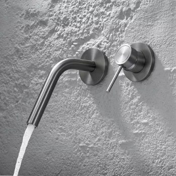 Luxury Brass Wall Mounted Bathroom Faucet with Embedded Single Handle Double Hole Mixer