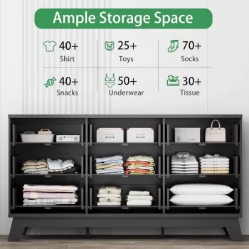 Modern 9-Drawer Fluted Dresser for Bedroom & Closet Storage, 57” Wooden Chest