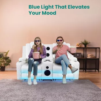 Modern Recliner Home Theater Sofa with Wireless Charging, USB, LED & Speakers