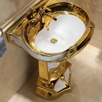 Mosaic Gold Vintage Pedestal Sink with Ceramic Basin and Overflow
