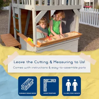 Outdoor Wooden Playhouse for Kids with Sandbox, Bench, Telescope, and Climbing Ramp