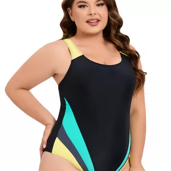 Plus Size Women's One Piece Sports Swimsuit Backless Patchwork Design