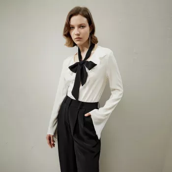 Silk Blouse with Trumpet Sleeves & Removable Tie