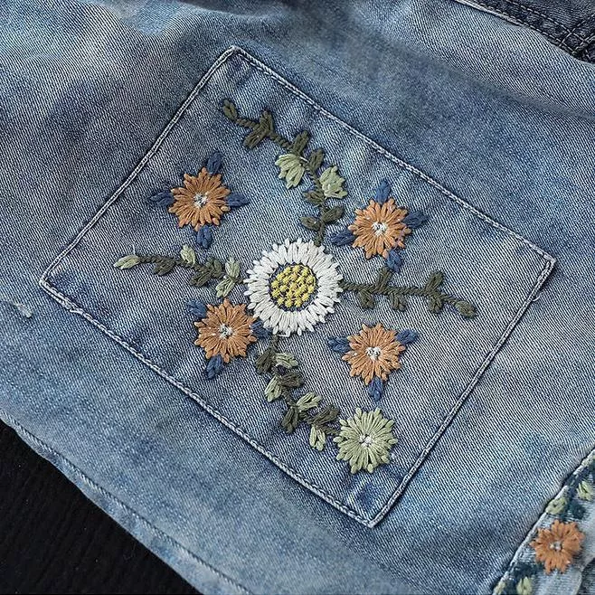 Summer Floral Embroidery High Waist Wide Leg Denim Shorts