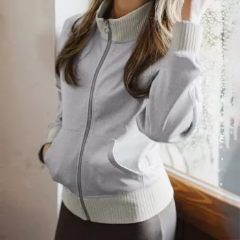 Women’s Vintage Grey Zip-Up Stand Collar Sweatshirt Cardigan Jacket
